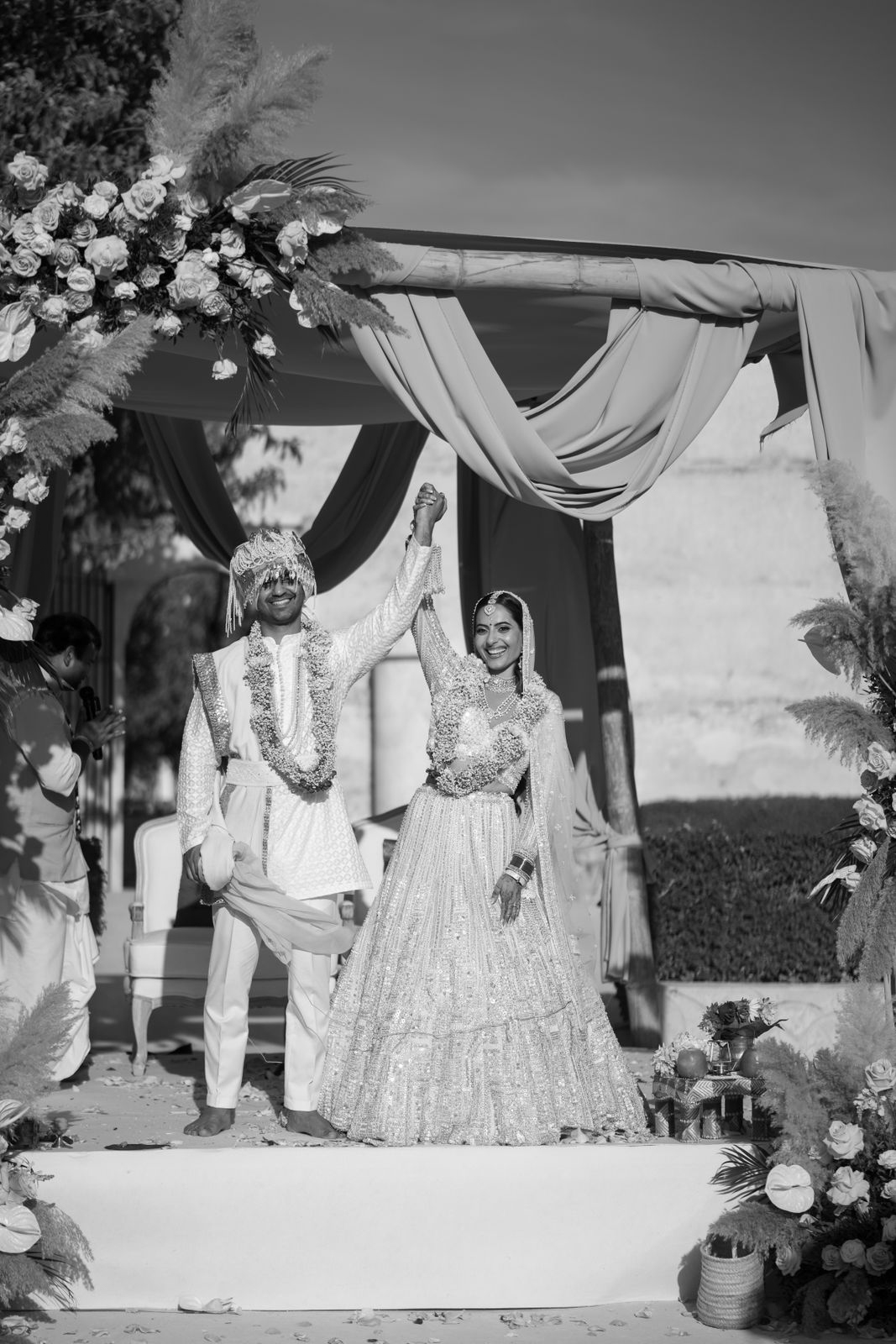 Der dritte Tag bildete den Höhepunkt der indischen Hochzeit. Unter einem prachtvoll dekorierten Mandap versammelte sich die Familie, um mitzuerleben, wie das Paar Gelübde austauschte und traditionelle Rituale vollzog. Die Hochzeit in Sevilla verband dabei authentische Traditionen mit modernem Stil und hinterließ bleibende Eindrücke für das Paar und alle Gäste.