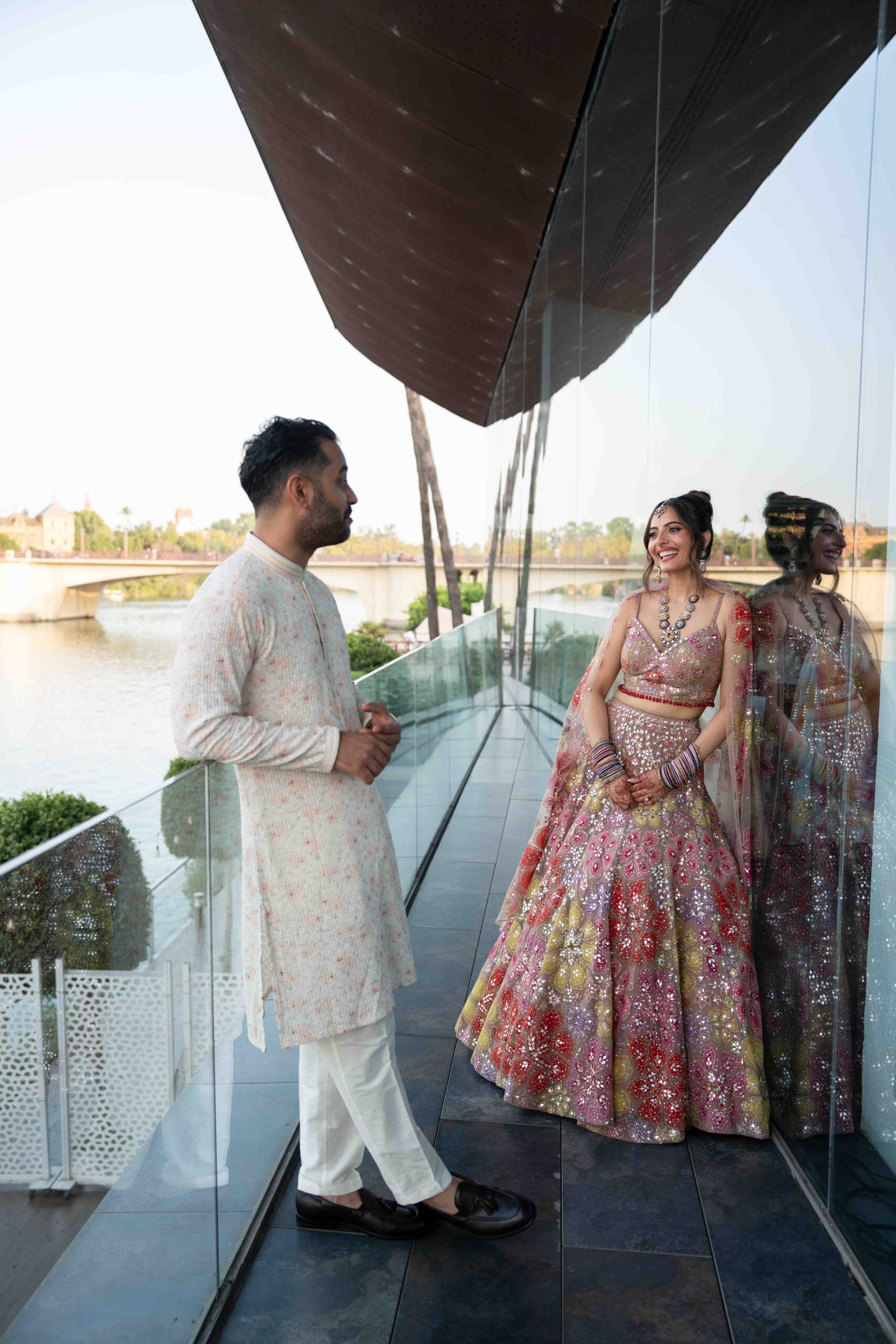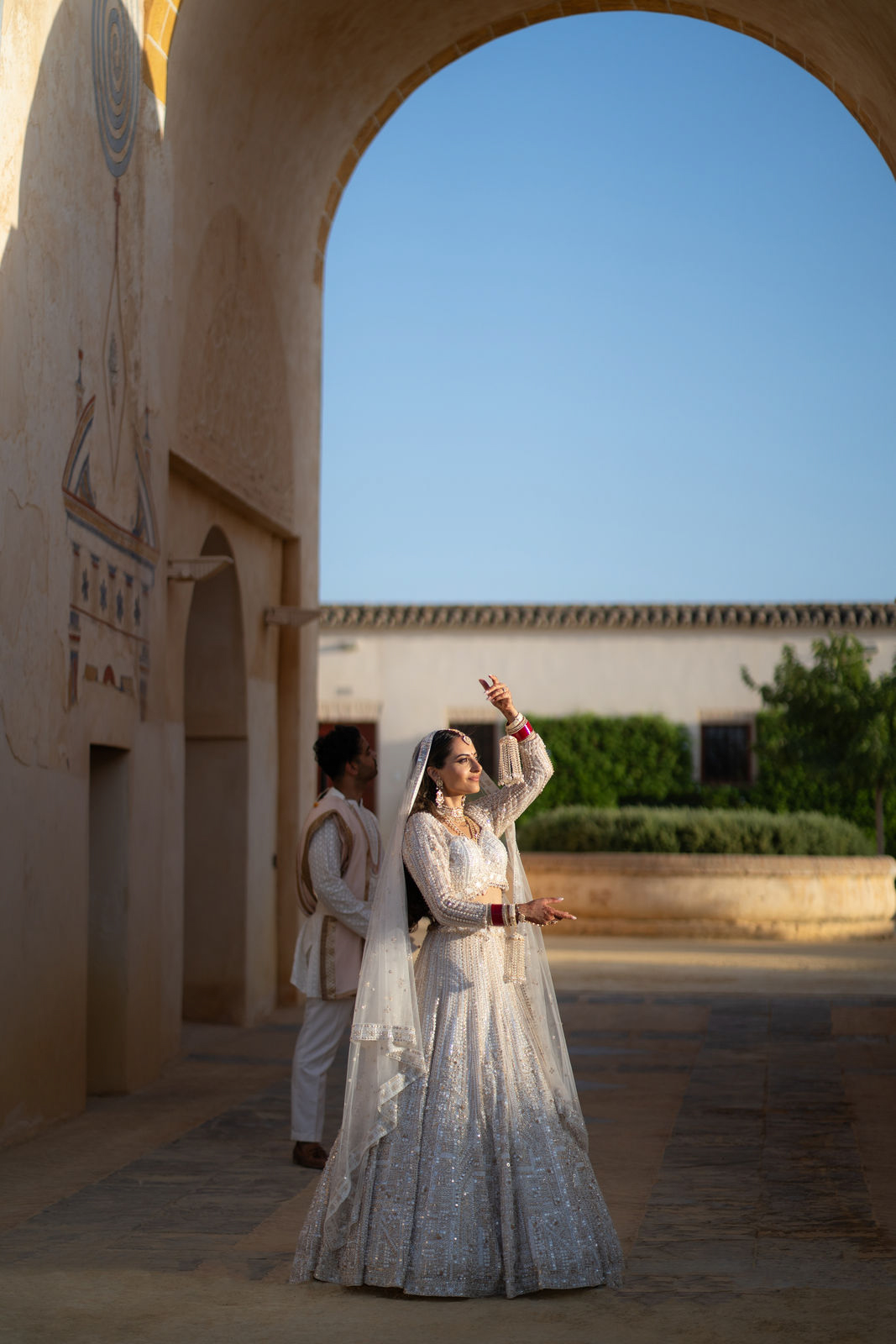 Die indische Hochzeit von N & R in Sevilla bot eine unvergessliche Kulisse für ein dreitägiges Fest der Liebe. Die Feier vereinte auf außergewöhnliche Weise traditionelle indische Rituale mit modernen Elementen und schuf eine atemberaubende Symbiose aus Kultur, Stil und Eleganz.